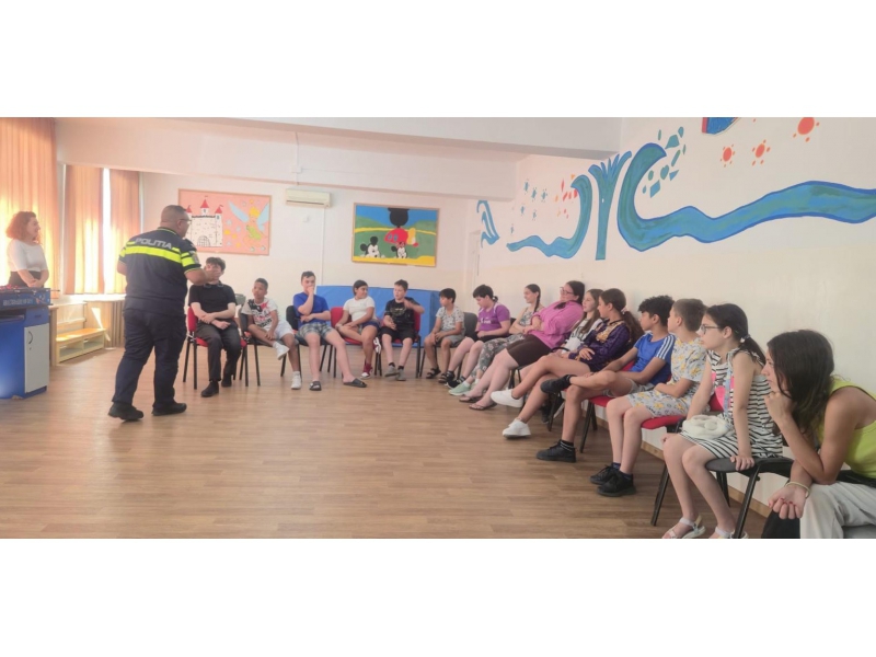 Pe parcursul vacanței de vară, polițiștii Biroului Siguranță Școlară din cadrul Inspectoratului de Poliție Județean Bihor, cu sprijinul polițiștilor de la Compartimentul de Analiză și Prevenire a Criminalității și al reprezentanților Centrului Regional Oradea - Agenția Națională Împotriva Traficului de Persoane, desfășoară activități informativ - preventive destinate copiilor, în taberele școlare organizate în județul Bihor.