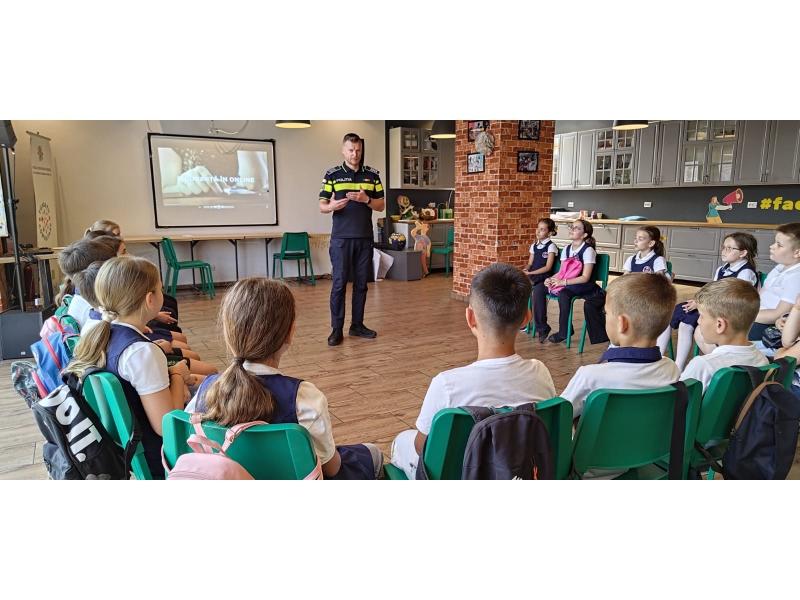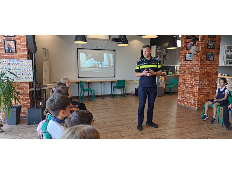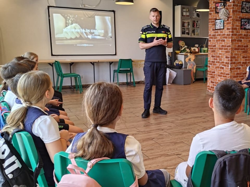 Informații utile pentru siguranța copiilor și adolescenților, pe parcursul vacanței de vară, la atelierele de informare organizate de polițiștii de prevenire bihoreni, la Comuniteca Oradea, în cadrul proiectului „Educație pentru siguranță”.