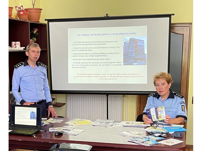 Totodată, la Centrul Multifuncțional pentru Persoane Vârstnice Ioșia a avut loc o întâlnire cu reprezentanții asociațiilor de proprietari de pe raza municipiului Oradea, în cadrul căreia au fost prezentate măsuri pentru prevenirea furturilor din locuințe și, totodată, a avut loc o expoziție de fotografii, reprezentând scene reale, rezultate în urma infracțiunilor de furt din locuință, pentru ca cetățenii să conștientizeze că bunurile de valoare trebuie păstrate în condiții de siguranță.