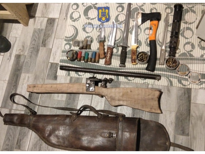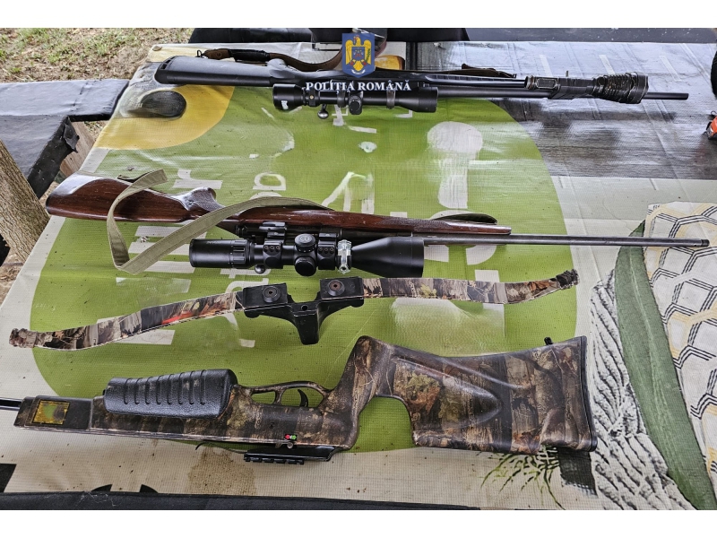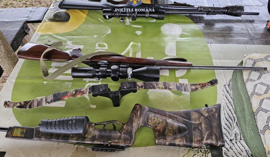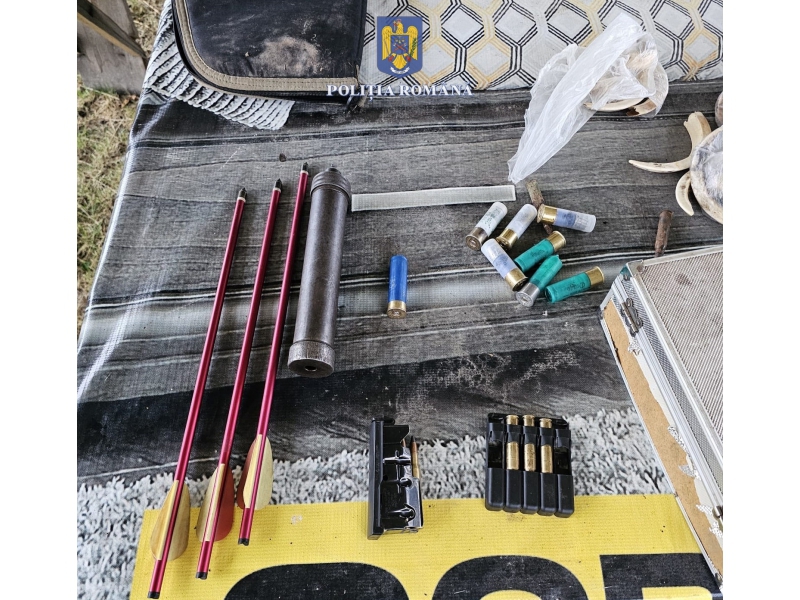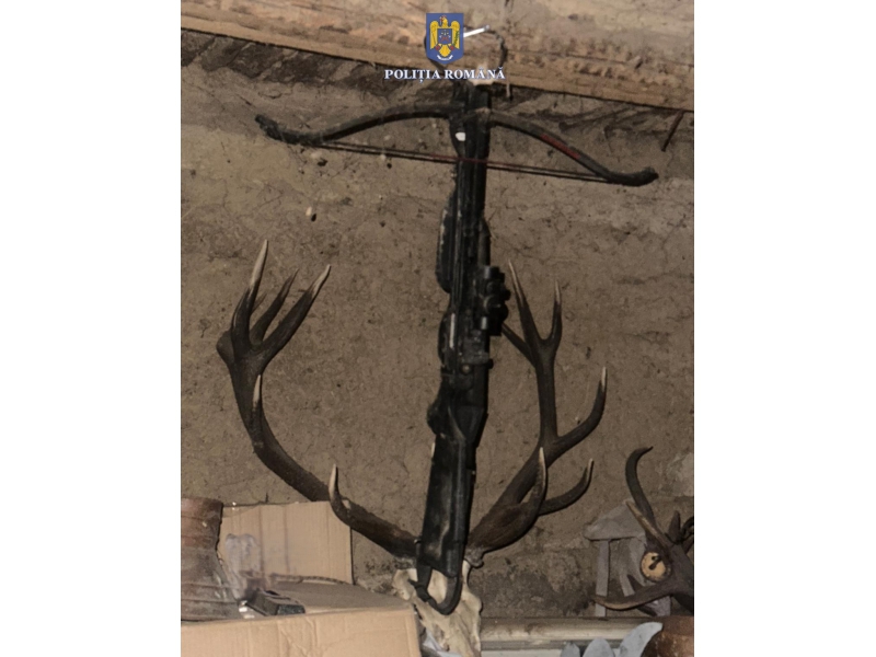 În urma perchezițiilor domiciliare efectuate, au fost descoperite și ridicate două arme letale lungi cu destinația vânătoare, dintre care una având seriile de identificare șterse, două arme letale confecționate artizanal, două arbalete, 49 de cartușe de diferite calibre, 382 de diabolouri, un amortizor, 5 săgeți, 34 de trofee, toate deținute ilegal.