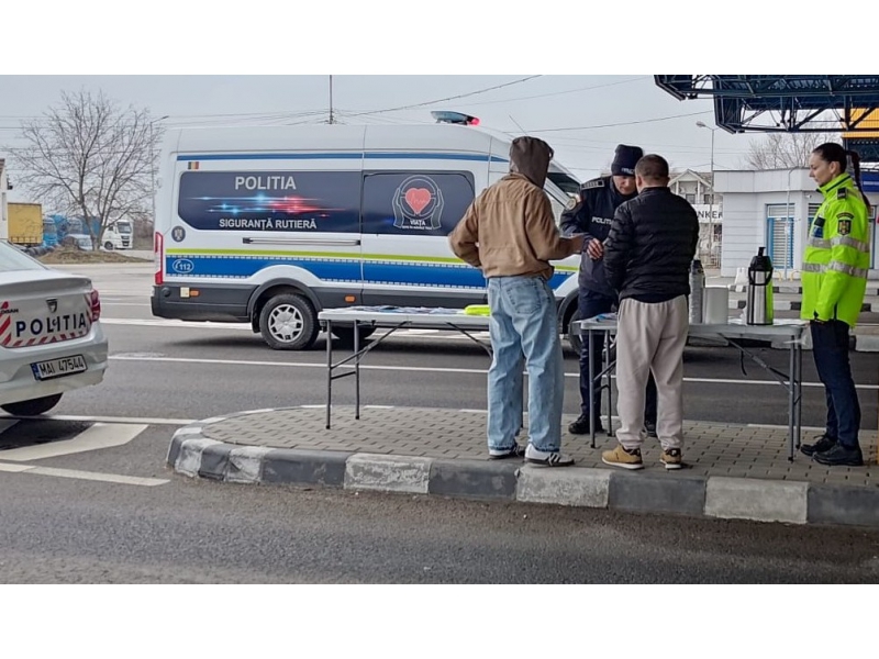 Conducătorilor auto care se întorc acasă, de Crăciun, le-au fost oferite pauze de cafea și recomandări, în cadrul unor activități preventive, pentru prevenirea accidentelor rutiere produse pe fondul oboselii la volan și a victimizării prin infracțiuni specifice sezonului sărbătorilor de iarnă.