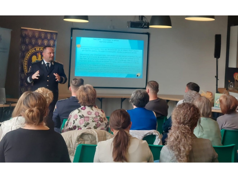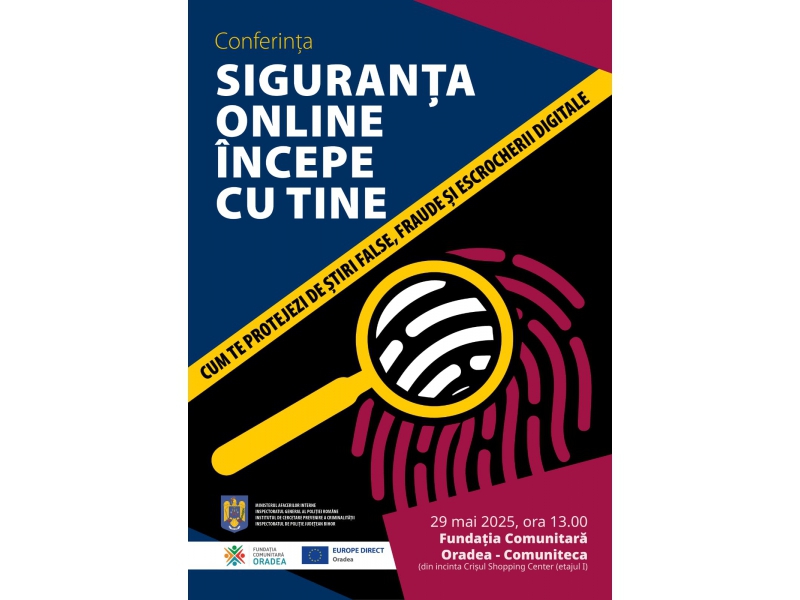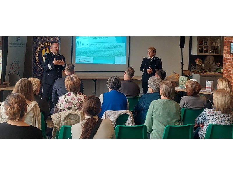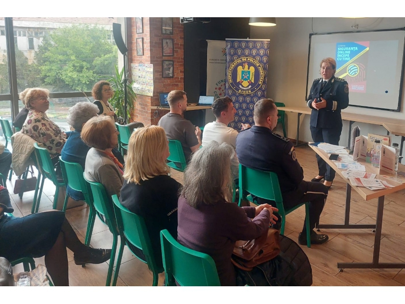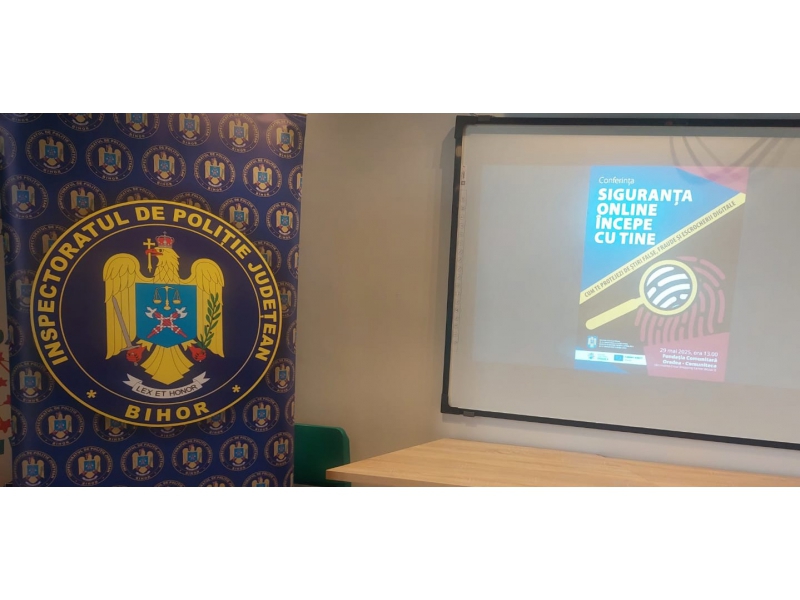 De asemenea, la Comuniteca Oradea, polițiștii de la prevenire, alături de reprezentanții Fundației Comunitare Oradea, au susținut conferința „Siguranța online începe cu tine!”, un eveniment dedicat orădenilor interesați de un mediu digital mai sigur, în cadrul căruia au fost abordate riscurile și vulnerabilitățile asociate utilizării rețelelor sociale, aplicațiilor mobile și altor platforme digitale, fiind oferite totodată recomandări concrete pentru o experiență online responsabilă și în siguranță.